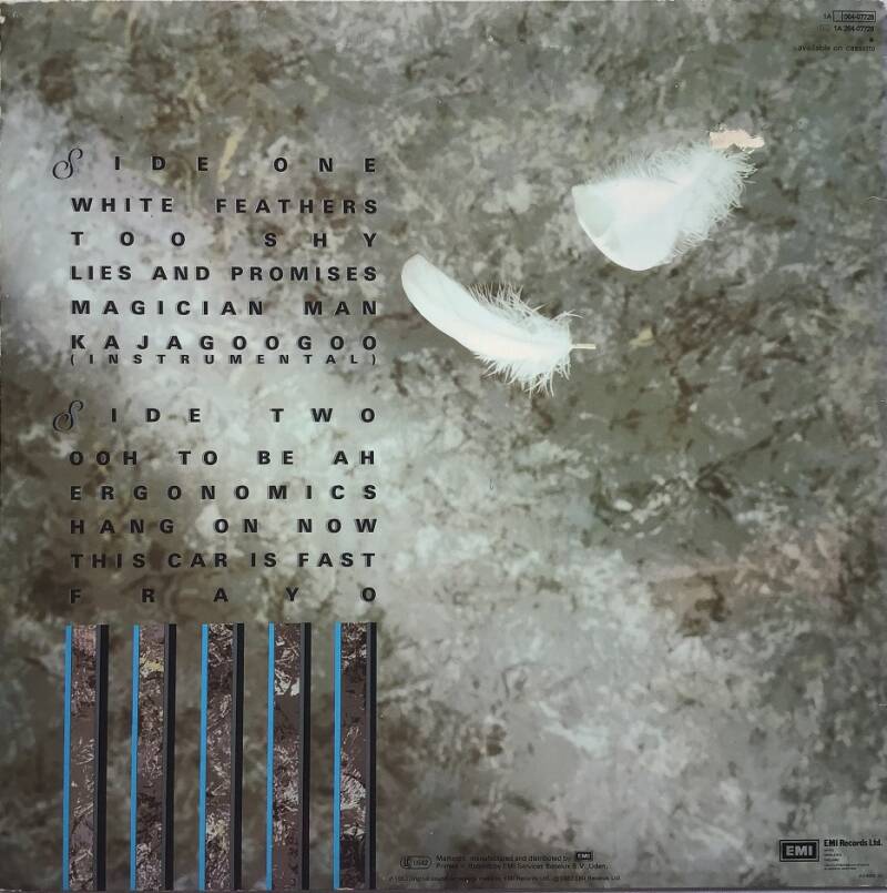 A: White Feathers (3:28) / Too Shy (3:50) / Lies And Promises (2:50) / Magician Man (3:40) / Kajagoogoo (Instrumental) (3:14)